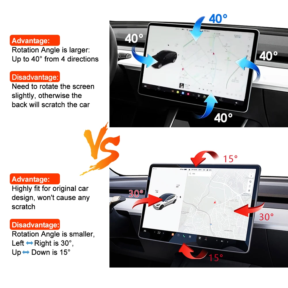 New Car Interior Accessories 40 Degree Full Direction Screen Rotating Holder for Tesla Model 3 Y Highland Swivel Mount Bracket
